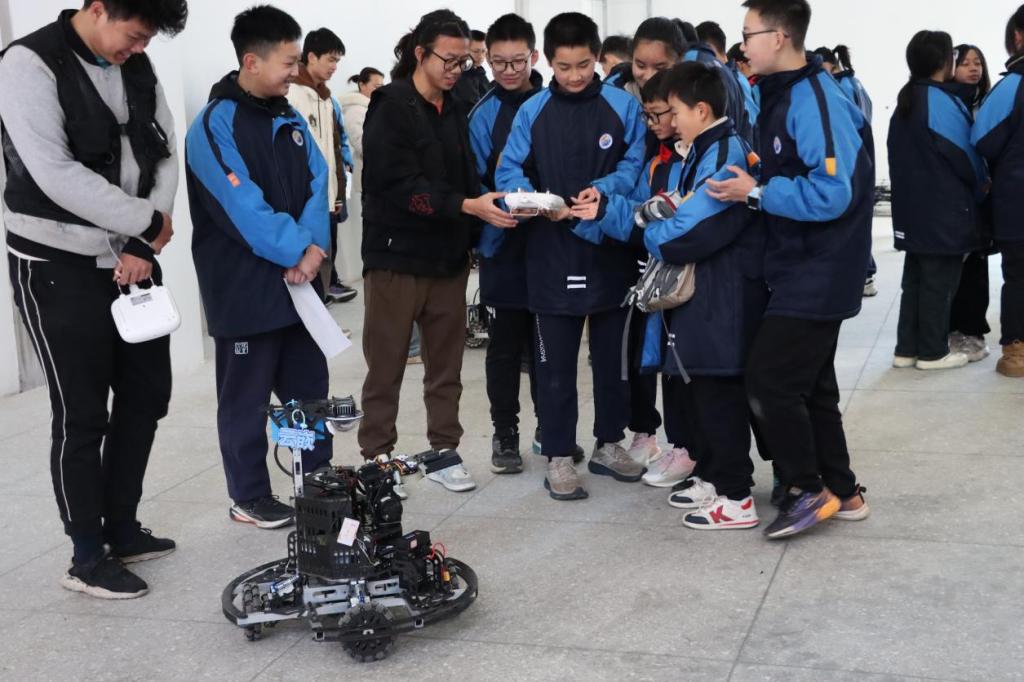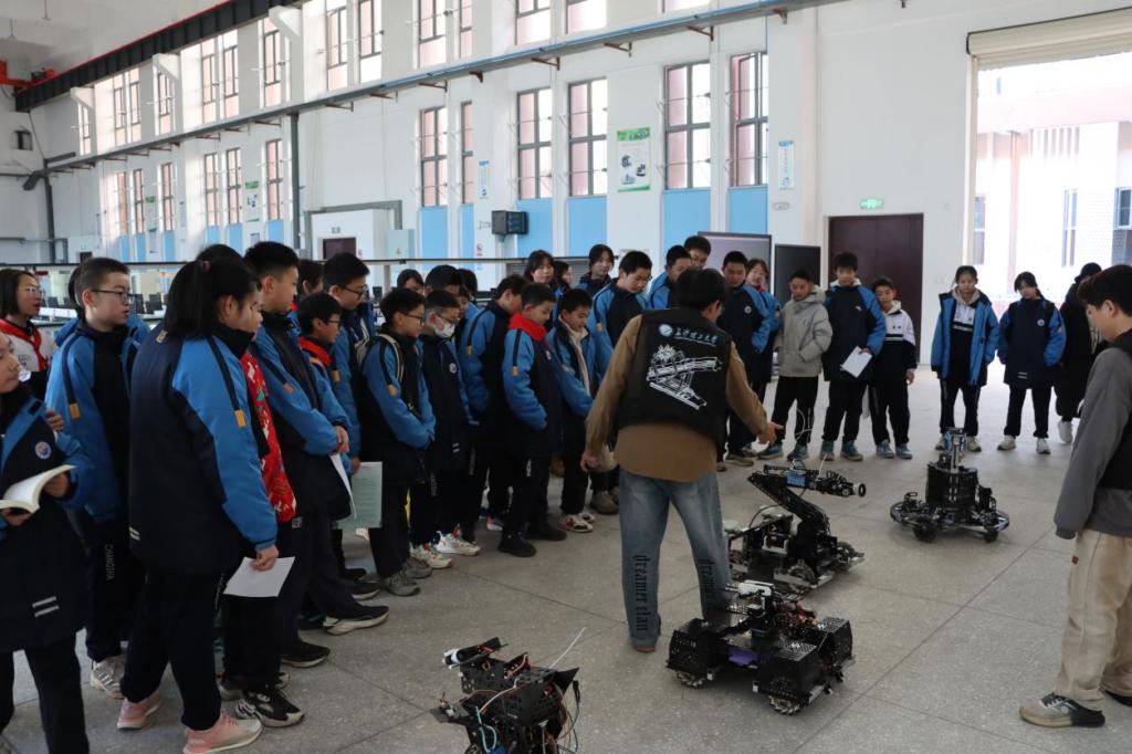 在卓越工程师学院,学院RM团队成员带领中学师生参观了人工智能与机器人赛事训练及培训基地。团队成员对RoboMaster青年科创平台的建设情况进行介绍,在成员们的带领下依次向师生们介绍云嵌战队各款参赛机器人。在参观过程中,师生也参与操纵机器人,团队成员逐一指导并解答疑问,使师生们对机器人赛事和操控拥有进一步的理解与认识。