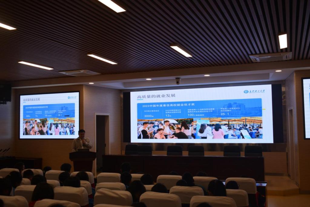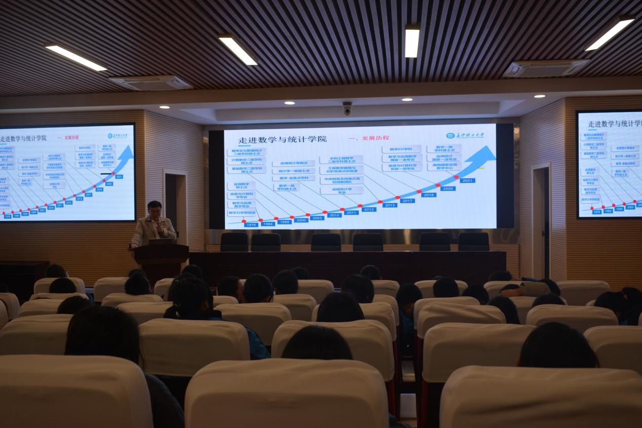 在数学与统计学院,张潇腾老师介绍了学校的基本情况,从“衣食住行”等学生感兴趣方面重点展开,同时向同学们展示了威廉体育williamhill的办学实力,并介绍了招生政策等。随后,他从《寻数之旅》短片出发,介绍了数学与统计学院的发展历程、师资力量、科研实力、育人成效等,使师生们对威廉体育williamhill和数学与统计学院有更全面的认识。