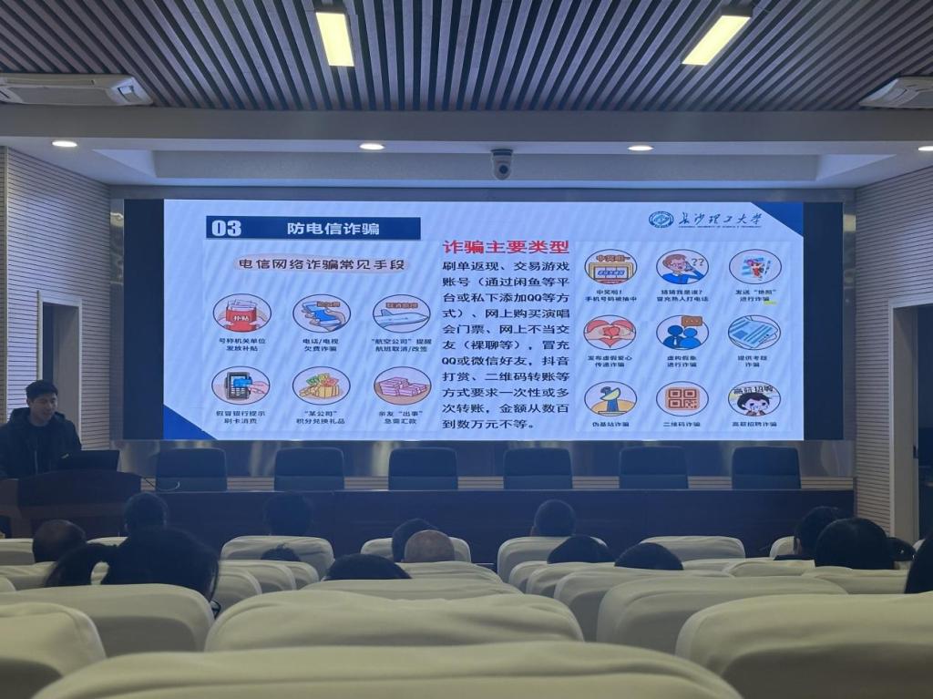最后,他重点强调了安全教育的重要性。以通俗易懂的语言分析校园内可能发生的安全隐患,并希望研究生导师和班主任要教育引导学生提高防诈骗意识,增强防范能力,在校园中营造浓厚的安全氛围,共同守护校园的平安与美好。