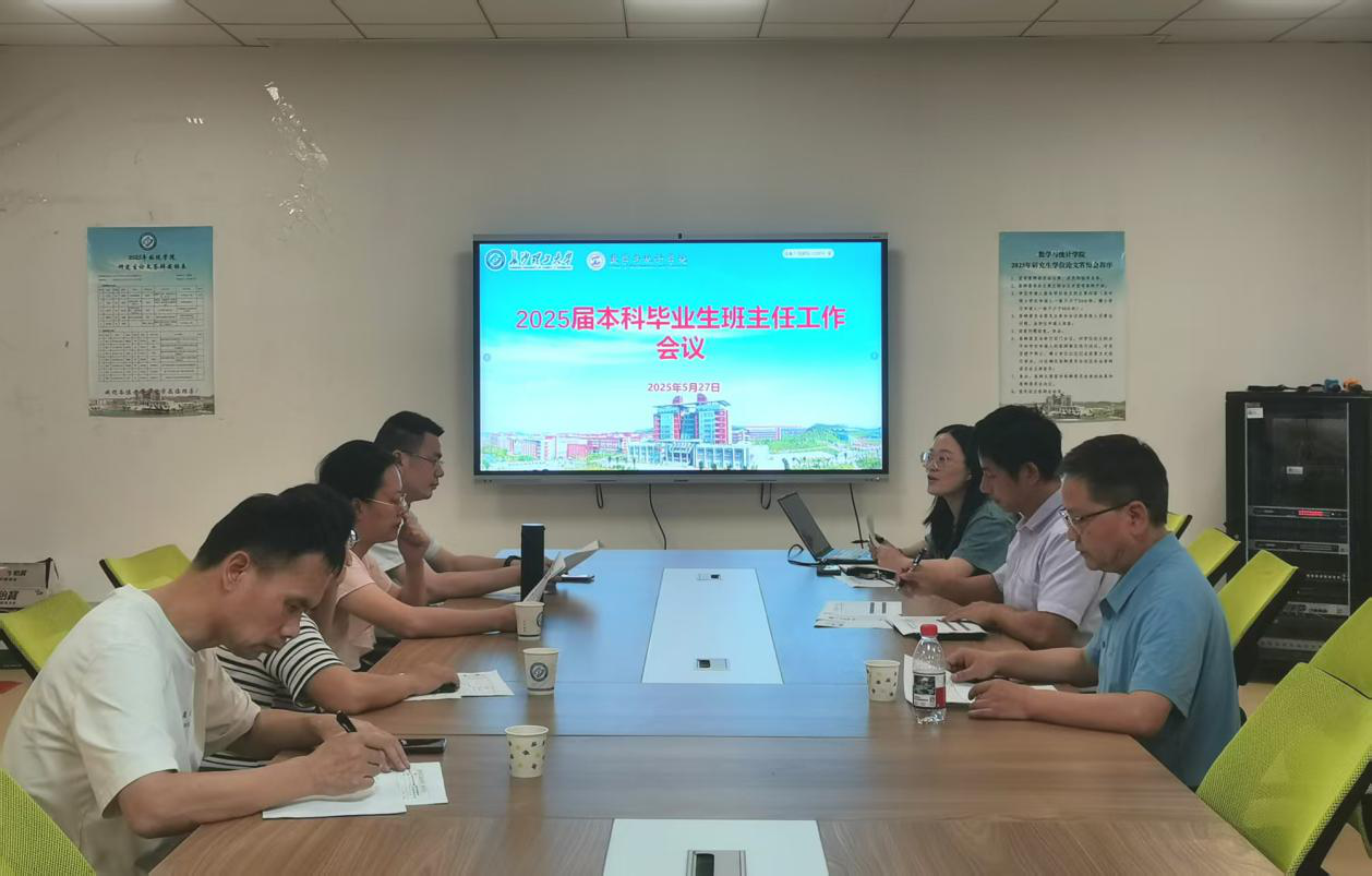 为扎实做好毕业生的教育管理与就业服务工作,强化班主任队伍建设,5月27日下午,我院在理科楼A212会议室召开2025届本科毕业生班主任工作会议,学院党委书记邓崛峰、副院长李景、院党委副书记兼副院长郑忠辉、副院长胡海军及本科毕业班班主任出席,会议由年级辅导员彭峥主持。