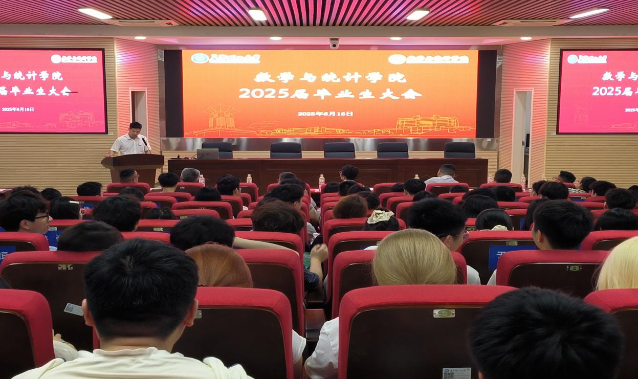 6月16日下午,数学与统计学院2025届毕业大会在理科楼A200隆重举行。院党委书记邓崛峰,副院长李景、胡海军、李姣,院党委委员、纪委书记仝青山,院党委委员兼应数系主任王芳,以及统计系主任杨安明、信计系主任罗煦琼、各班班主任、学工办全体老师与全体毕业生参加,会议由学院党委副书记郑忠辉主持。