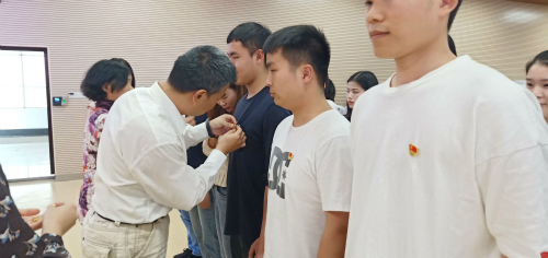 宣誓仪式在雄壮的《国歌》声中拉开序幕。首先由党委副书记马丽宣读新党员名单,接着所有新党员面向党旗,举起右手,在领誓人张宏伟的带领下,向党旗庄严宣誓,表达对党的忠诚、为共产主义事业奋斗终身的决心。宣誓结束后,张宏伟、黄凤英一同为新党员佩戴党徽。紧接着新党员代表郭肖晋,老党员代表安勃分别发言,从自身学习和工作出发,向大家分享了自己理解的共产党员的责任与担当,表明了投身党的事业的勇气和决心。