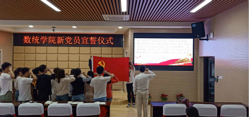 2019年4月9日,数学与统计学院在理科楼A200举行新党员宣誓仪式,数统学院党委书记张宏伟,特邀党建组织员黄凤英出席会议,数统学院本科生、研究生全体党员参加会议,会议由学院党委副书记马丽主持。