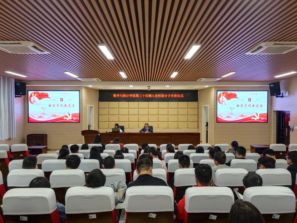 2019年10月29日下午,数学与统计学院在理科楼A200举行了第三十四期入党积极分子培训班开班典暨第一次党课培训。班主任庄奕及第三十四期入党积极分子参加本次活动。