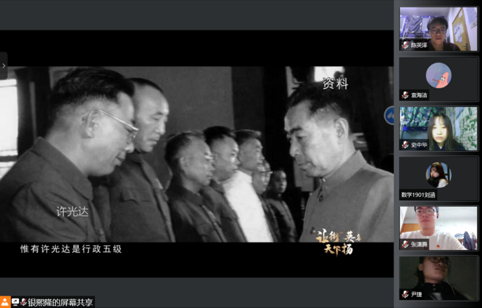 为加强党员党性修养,践行党员初心使命。10月下旬,数学与统计学院结合党史学习教育,采取集中与分散、线上和线下的方式,分批次组织全院党员观看党员电视教育片《“让衔”英名天下扬》。