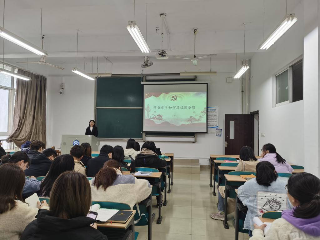 本次党课围绕四个方面展开:一、接受新党员要有预备期,二、党员的教育管理,三、预备党员在预备期间需要注意的几个问题,四、预备党员转正程序。会议伊始,庄奕简要说明预备期的意义。在预备期期间,党组织可以进一步对预备党员进行教育,并通过给预备党员分配工作,对预备党员进行考察,提高他们的政治素质。随后,庄奕主要介绍了党员的教育管理。指出预备党员们应当多加强政治理论学习,深刻学习和贯彻习近平新时代中国特色社会主义思想,将组织培训和个人自学相结合,做到学以致用、知行合一。紧接着,她通过鲜活的事例形象生动地介绍了党员日常教育管理、党籍和党员组织管理、毕业生党员转接、流动党员和党员教育管理信息化等问题。最后,她介绍了预备党员在预备期需要注意的问题,尤其强调了预备党员在预备期如何严格要求自己,如何更好地发挥党员的先锋模范作用。