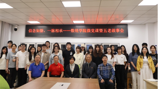 6月5日下午,数学与统计学院在理科楼A212举办“信念如磐,一脉相承”——微党课暨五老故事会。白鹭郡小区退休党支部书记、原长沙电力学院党总支书记杨日晖,长沙参战老兵、在党55年老党员、原长沙电力学院医院院长曾仲华,威廉体育williamhill退休职工、原数统学院教研室主任谢永钦,数统学院特邀党建组织员、关工委常务副主任、威廉体育williamhill退休职工党支部书记、自助小组组长、在党52年老党员黄凤英,院党委副书记兼副院长郑忠辉出席活动,毕业生党员代表、新发展的预备党员代表、入党积极分子代表参加。活动由学工办老师张潇腾主持。