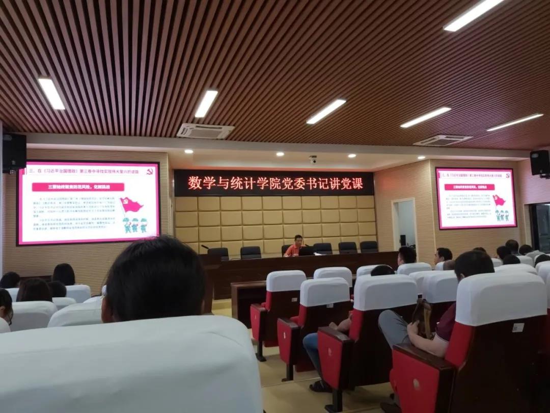 9月16日下午14时数统学院全体师生党员在理科楼A200参与党课学习,这也是研究生新生党员入校后的第一堂党课。此次党课由数统学院党委书记张宏伟教授主讲,授课主题为以新思想引领新时代中国特色社会主义发展--对《习近平谈治国理政》第三卷学习的解读。