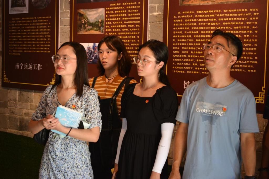 故事从宛旦平故里红色景区碑和竹青亭开始,碑代表着宛将军的担当,竹青亭则赞美着宛将军妻子的大爱和他们坚贞不渝的爱情。沿着文化长廊品读经典,感受文化熏陶,实践团来到了宛旦平将军居住的地方——宛氏宗祠,宗祠里铿锵有力的十六个字“东征北伐碧血丹心,龙州起义光照千秋”霸气概括了宛旦平将军的生平。在古树荫蔽送来的阵阵清凉下,李老师带领实践团了解了新宁的绿色文化,沿着江来到了烈士衣冠冢,聆听着178位烈士光辉的英雄故事。感受其中藏匿的宛将军全心全意为人民服务的精神,更加深刻领悟到了党的宗旨。