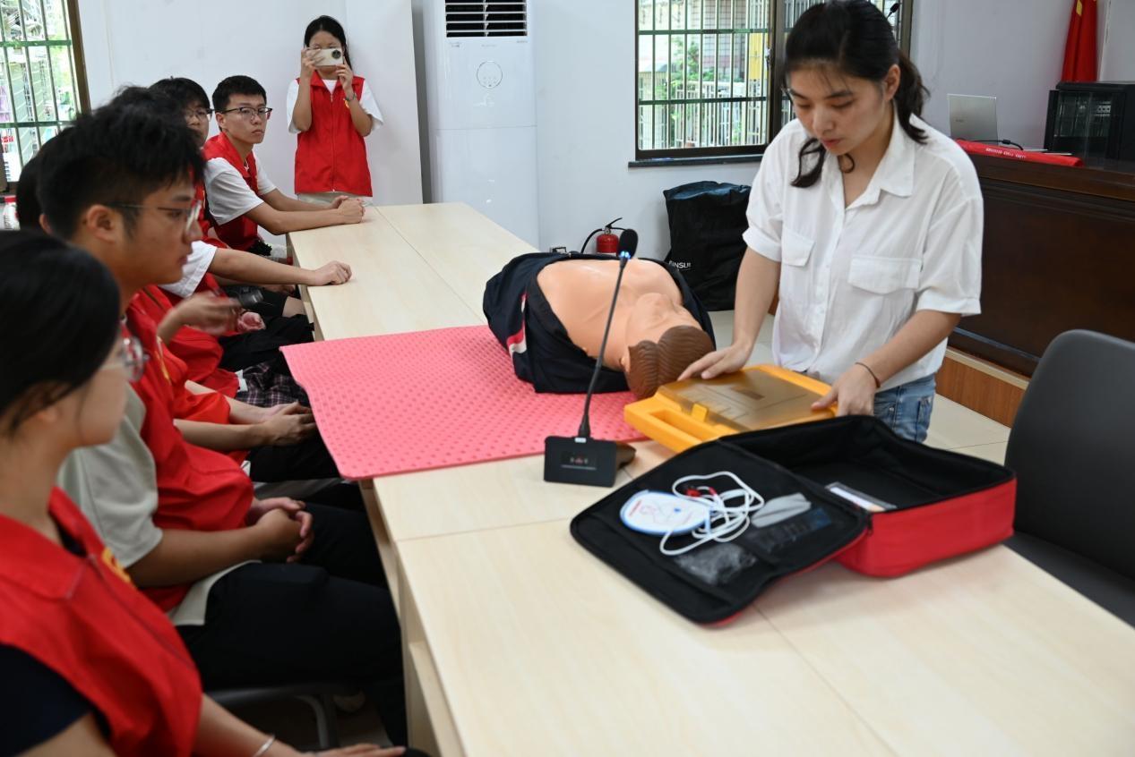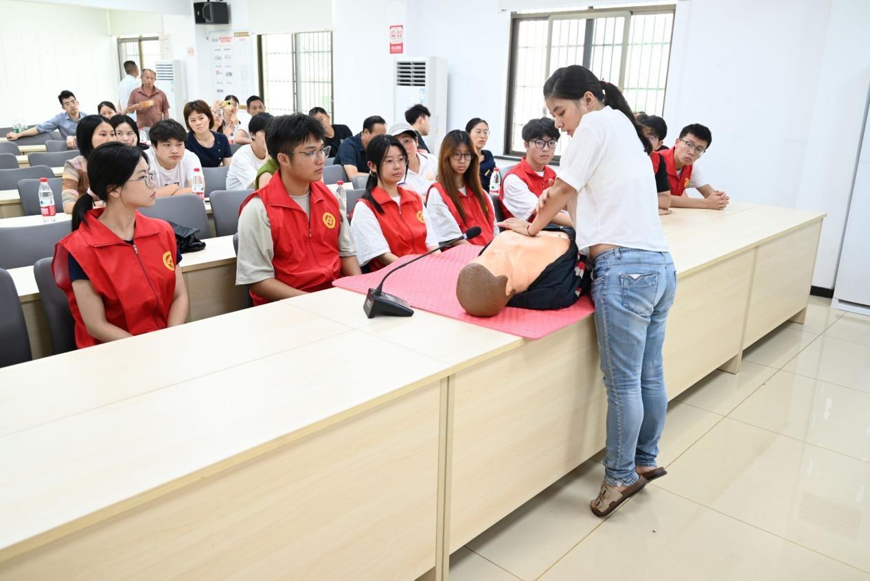为深入践行“三下乡”社会实践精神,学习应对心脑血管疾病突发时的急救措施,6月30日,威廉体育williamhill数学与统计学院“数智健心”团队在长沙市雨花区洞井街道融合社区联合社区工作人员开展了心肺复苏急救培训。培训以“应对心脑危机,复苏点燃生机”为主题,通过宣讲心肺复苏的流程和AED的使用方法以及实际操作,为社区居民尤其是老年人带来一场干货满满、意义非凡的生命急救知识盛宴。