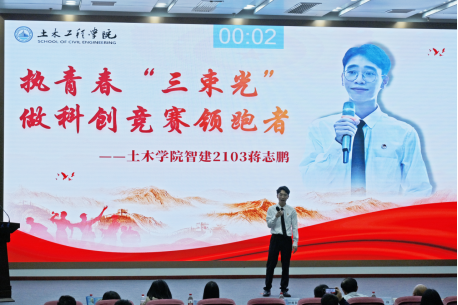 罗孝宇则以“筑梦长理—以青春之姿挺膺担当”为题展开分享。罗孝宇是学院2018级本科生、2022级研究生,他在长理求学6载,曾取得综测专业第一,荣获首届工创大赛全国总冠军等国家级奖励5项、省部级奖励4项、校级奖励27项、SCI论文等科研成果16项。罗孝宇从“勇攀科研高峰,唯奋勇者胜”、“勇夺科创冠军,唯奋楫者先”、“勇担青年使命,唯奋斗者强”三个方面讲述了自己学在长理的学习、科研、竞赛和志愿服务等方面的经历,并表示要致力于国家基础设施防灾减灾研究,把论文写在祖国大地上!