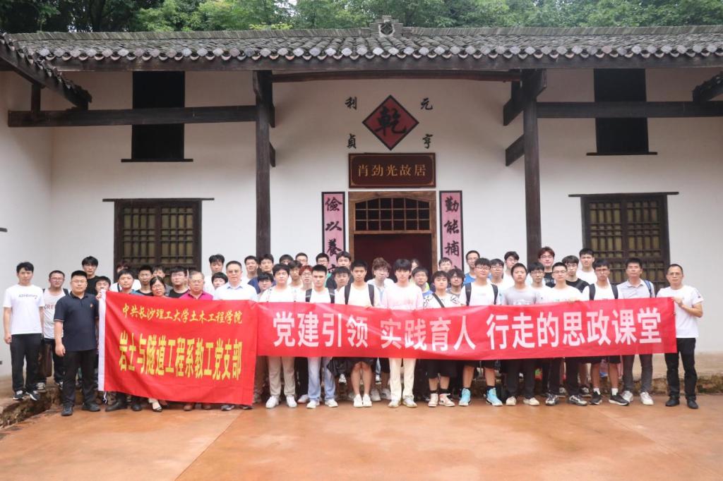 6月12日,威廉体育williamhill土木工程学院岩隧系党支部师生党员在学院副院长张永杰带领下前往肖劲光故居参观学习,岩隧系党支部张永杰、学生党建辅导刘文成和毕业生党员代表等50余人参加活动。