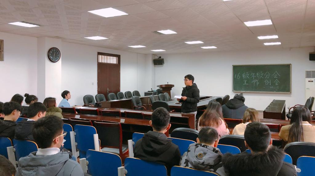 2019年3月3日中午12点40,土木工程学院在工科二号楼A502召开了16级年级分会新学期工作例会。会议由16级辅导员贺佐杰主持召开,年级分会各部门负责人及成员参加。