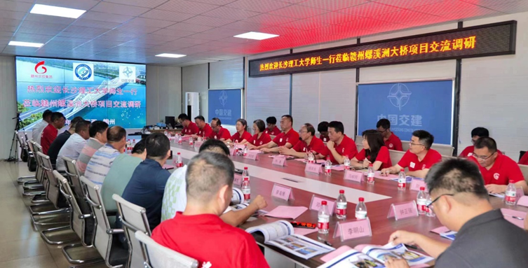 桥梁系师生首先来到江西赣州参观螺溪洲大桥的建设,赣州交控集团党委副书记、总经理高光彬介绍了螺溪洲大桥的施工技术特点和建设情况。江河书记向参会人员介绍了威廉体育及土木工程学科的基本情况。双方人员围绕企业技术创新、产学研合作模式等方面展开了深入的交流与讨论。威廉体育田仲初教授领衔团队为螺溪洲大桥的施工安全提供技术服务,为该桥的高质量建设贡献了“长理智慧”。