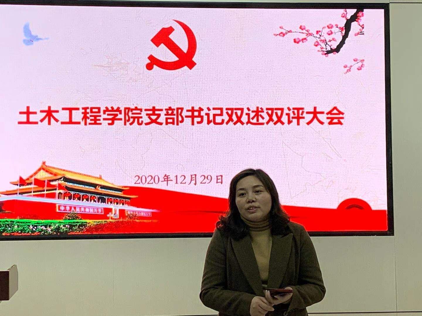 12月29日下午,土木工程学院在工科二号楼学生发展中心召开2020年度支部书记双述双评大会全体支部书记集中向党委进行述职。学院全体党委委员和教工、学生党支部书记参加,党委书记丁丹主持会议