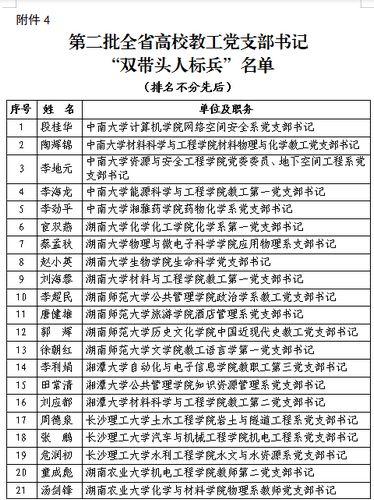本次评选是湖南省教育工委《关于落实高校党组织“对标争先”建设计划的实施方案》中系列工作之一。经高校申报,省教育工委形式审查、专家推选、负面清单审核、无记名投票等评选程序,并通过省委教育工委会议集中审定,遴选第二批全省高校党建“示范高校”13所(含3所部属高校)、“标杆院系”70个、“样板支部”60个、教工党支部书记“双带头人标兵”100名、“党务工作示范岗”100个、“青年教工党员示范岗”95个。同时认定我省2019年入选第二批全国党建工作“标杆院系”(1个)和“样板支部”(40个)的培育创建单位为第二批全省高校党建“标杆院系”和“样板支部”。