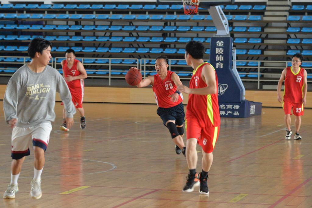 双方队员简单热身后,教工队与研究生代表队的比赛率先打响。双方队员很快进入状态,传球、投篮、上篮,每个动作都充满激情和力量。现场观众的加油呐喊声也响彻球场。教工队始终保持高昂的比赛激情,以极高的三分投篮命中率保持领先优势,最终以42:27战胜研究生代表队。下半场比赛,教工队继续迎战本科生代表队。双方比分你追我赶,战况激烈。最后两队以60:60握手言和。现场观众席上的同学们也十分投入,不断为球员们加油打气,欢呼声此起彼伏。