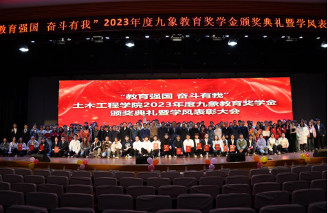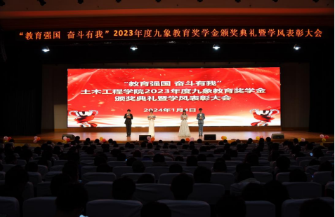 1月4日晚,土木学院于金盆岭校区五教大礼堂举行2023年度九象教育奖学金颁奖典礼暨学风表彰大会。