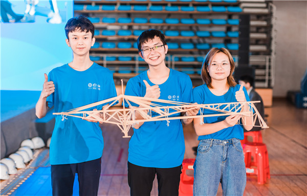 期间涌现了很多构思精妙、设计合理、外形美观的结构方案。尤其是结构加载环节,现场紧张的气氛仍在计时器的滴答声中不断升温,选手们小心翼翼的加载砝码,加载成功后击掌相庆,现场高潮迭起,呈现了一场可观性很强的结构制作学科盛宴。