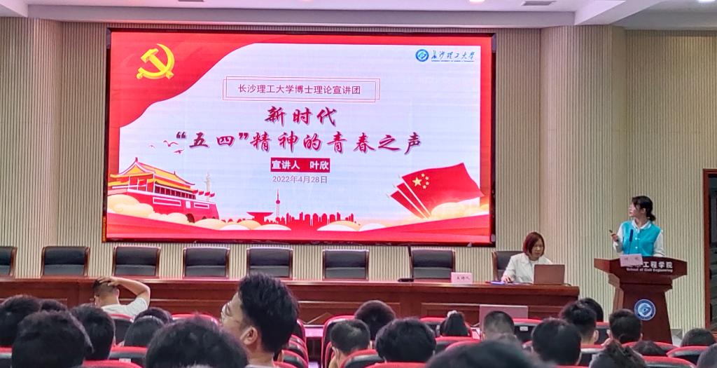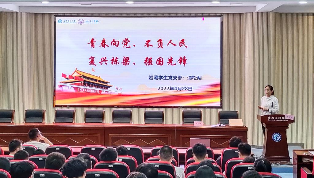 五四运动103周年之际,为加强支部党员、积极分子的理论学习,提高政治素养,2022年4月28日星期四,威廉体育williamhill土木工程学院党支部于工科二号楼A302召开了主题为“弘扬五四精神,喜迎二十大”的分享交流会。会议由邹智杰主持,邀请到了土木工程学院学生党总支副书记刘文成、湖南大学博士平智林、威廉体育williamhill博士叶欣及优秀本科生代表谭松梨、叶磊作主题宣讲。学生党员、学生干部、发展对象及入党积极分子代表约120人参加。