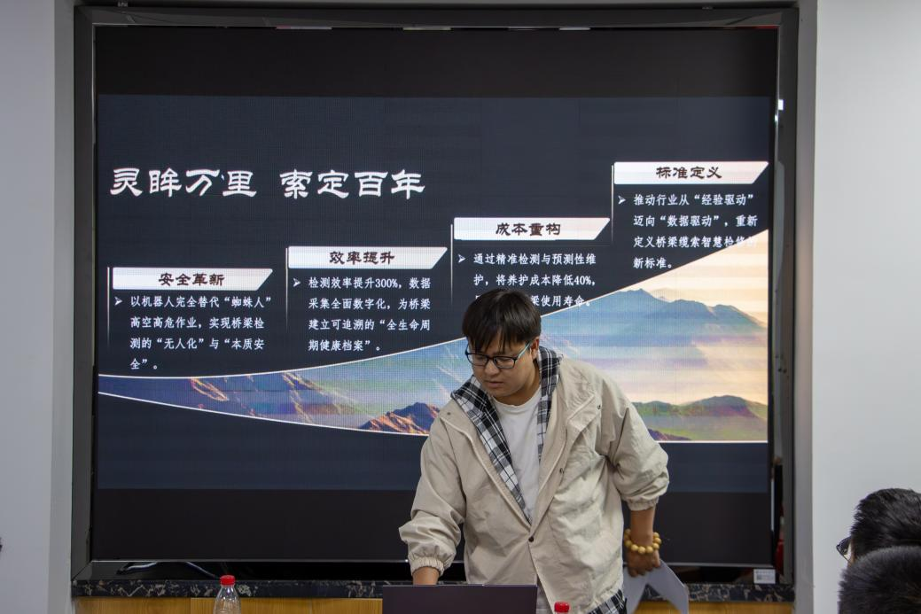 会议伊始,吴振华从赛事安排、学校要求、学院重视、服务保障等方面进行了比赛动员,要求各团队把握重要时间节点、加强学习交流、细化项目打磨,争取取得理想的比赛成绩。 大赛指导专家详细解读了比赛背景、评审要求、打磨要点等,强调要转变备赛思路,有针对性地进行项目转型升级。第一届金奖项目团队代表分享了实际备赛过程,并总结了获奖经验,建议各项目团队注重将学术成果转化为具备实际应用与商业潜力的参赛项目。随后,各参赛项目团队进行了路演,专家老师进行了点评与建议。