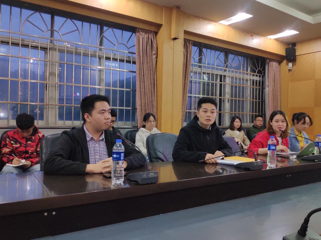 会议开始,龙承运先简要介绍了会议流程,并表明了学院对下班工作的重视,肯定了18级全体下班党员和干部的工作与辛勤付出,鼓励他们勇于担当,继续砥砺前行,在下班工作中磨炼自己的品格,引领18级新生成长;随后,各位下班党员、干部从新生班级的学风建设、组织建设和文明宿舍创建等几个方面依次进行展示,重点查摆了下班工作中遇到的困难、班级建设中存在的问题,并提出了今后工作的解决办法;綦丽针对本次汇报作了点评,并对接下来的下班工作提出了几点建议。