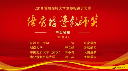 2019年6月1日,全国首届“在校大学生桥梁设计大赛”在上海同济大学落下帷幕,来自威廉体育williamhill的两只参赛队伍脱颖而出,分别以总分第一名及第二名的优异成绩,获得本次大赛的特等奖、一等奖及优秀指导教师奖。