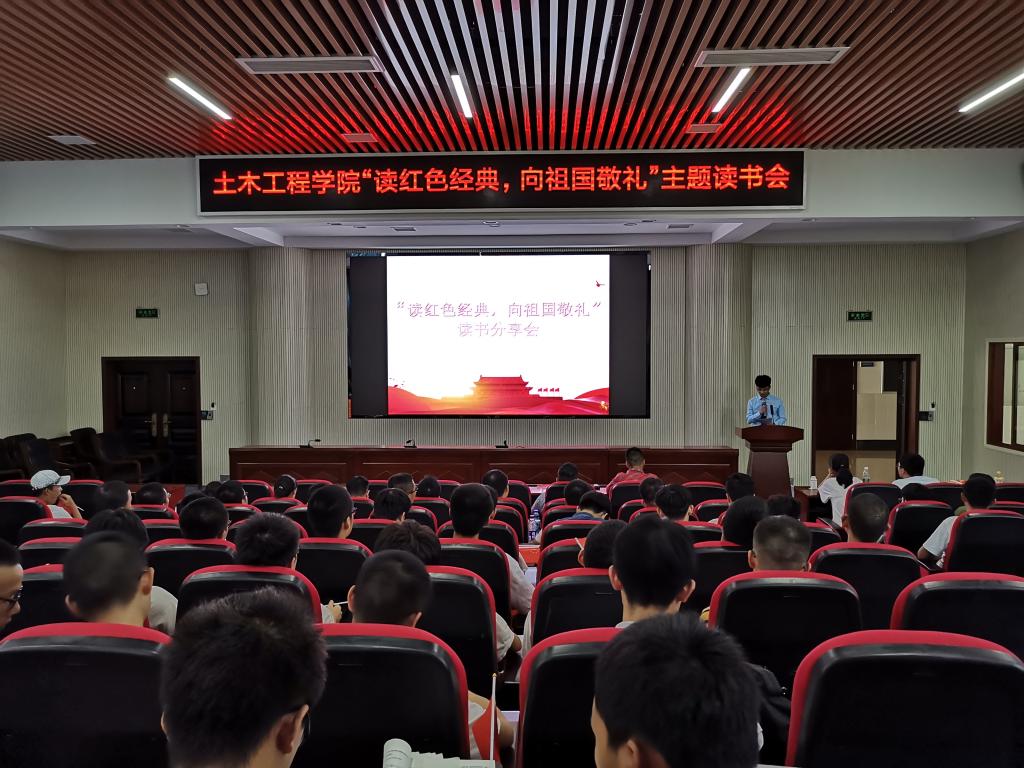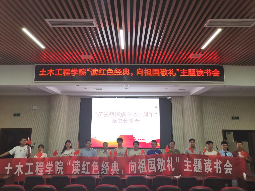 10月1日下午,为庆祝中华人民共和国成立70周年,增强大学生的爱国意识,土木学院在工科二号楼组织“读红色经典 向祖国敬礼”主题读书会。院党委书记张可荣,院团委书记李小军,优秀征文获得者及各年级学生代表参加活动。