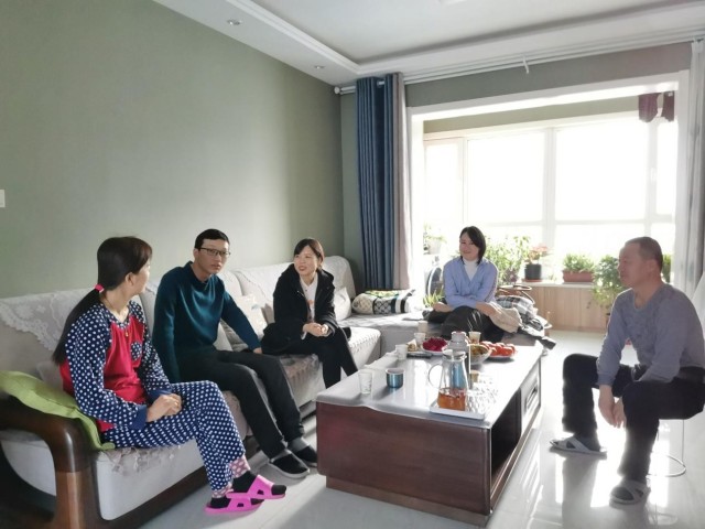 家访团一行在乌鲁木齐刘昱恒家中与家长交流