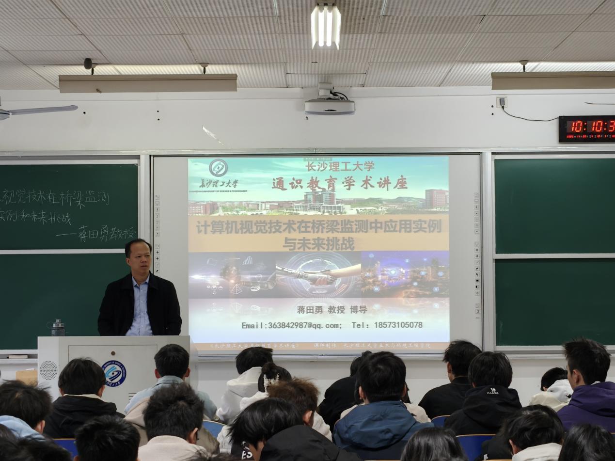 为深化学生对专业前沿技术的认知,激发学习兴趣与创新意识,11月20日上午,土木学院在综合教学楼C305开展主题为“计算机视觉技术在桥梁监测中应用实例和未来挑战”的通识教育讲座,蒋田勇教授应邀主讲,90余名本科生参加讲座。