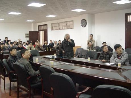 接着,谢干权教授从近代科学家牛顿、麦斯威尔和爱因斯坦的反算,诸子百家,帝王将相的反算,社会科学反算,数学力学的反算,地球科学中的反算,有限元正反算以及物理学中的正算反算等多个方面对科学反算作了即生动形象又鞭辟入里的论述,涉及物理、数学力学、地球物理、电磁学和计算数学诸多领域,在我院学子中淋漓尽致力地展示了人文与科学的无穷魅力。在报告中,谢教授用呼天地的方式来反推万物之逆理,语言幽默,正学反学奇恋,正教反教兼施,传授学问,激发聪明,将复杂的数学物理和文学诗歌联系起来,深入浅出,形象生动,妙趣横生。