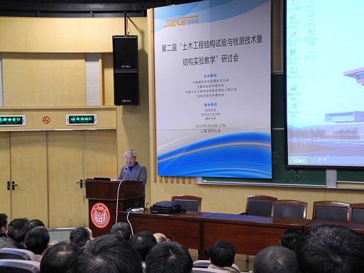 第二届“土木工程结构试验与检测技术暨结构实验教学”研讨会于2011年1月15~16日在上海同济大学召开。中国工程院院士范立础教授致开幕词,同济大学副校长陈以一教授致欢迎词,中国土木工程学会桥梁及结构工程分会秘书长肖汝诚教授、同济大学吕西林教授、清华大学聂建国教授等先后在开幕会上发了言。