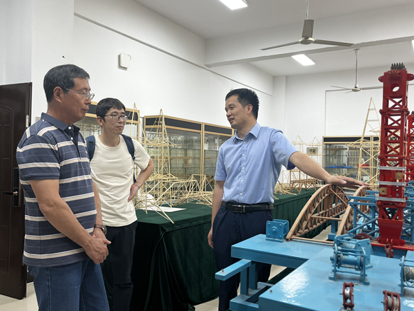 报告结束后,胡教授参观了桥梁工程安全控制教育部重点实验室、风工程与风环境研究中心和科创中心,并就实验室的建设提出了宝贵的建议。此外,他还与力学系的教师进行了座谈交流,听取了韩艳副院长关于力学一级博士点建设申报工作的汇报,并对年轻教师的学术方向和未来规划进行了详细指导。