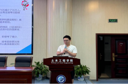 5月31日,土木学院于工科二号楼B302召开2024年研究生校内招生宣讲暨考研经验交流会。院党委副书记黄阿明、副院长蒋友宝、桥梁系教师贺君,研工办主任禹丽娥、学工办主任刘文成及2021级本科生代表160余人参加。会议由年级辅导员邓文杰主持。