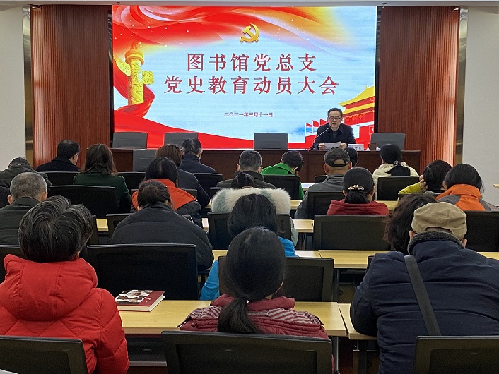 3月11日下午,图书馆在云塘馆B102室召开党史学习教育动员会,全体党员参加会议。