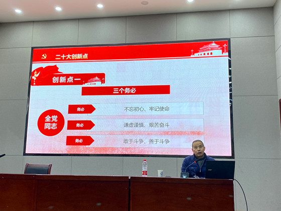报告会上,余乃忠以“学习贯彻党的二十大精神 推动学校高质量发展”为题,紧扣党的二十大报告原文,重点围绕大会的主题、主要成果、总体评价、创新点、从“两个务必”到“三个务必”等方面,结合自己学习的体会,理论联系实际,作了全面深刻、精彩生动的解读和宣讲。他强调,党的二十大报告主体鲜明、思想深邃、气势恢宏、意蕴深远,是夺取新时代中国特色社会主义新胜利的政治宣言和行动纲领,是指引前进方向、领航民族复兴的马克思主义纲领性文献。