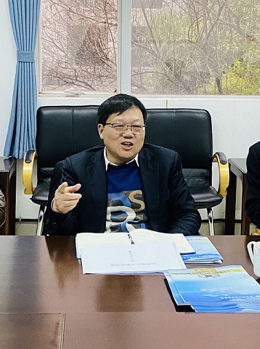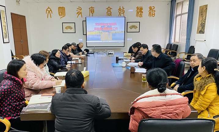 125午,校长刘建民到图书馆进行调研调研会在图书馆一楼B-127会议室举行,图书馆领导班子全体成员和中层以上干部参加会议