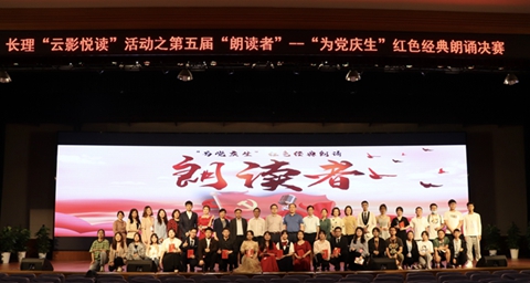 为丰富党史学习教育内容形式,推动党史学习教育走深走实,为歌颂党的伟大成就,传承红色文化经典,5月28日晚,由图书馆、党委宣传部、学生工作部(处)、团委、教务处联合主办的长理“云影悦读”活动之第五届“朗读者”——“为党庆生”红色经典朗诵决赛在金盆岭校区五教大礼堂成功举办。校党委宣传部副部长邓崛峰、校学工部(处)副部长贺良、校团委副书记陈璐莎、校朗诵协会会长李慧、图书馆党总支书记夏智勇担任本次评委,到场的嘉宾还有图书馆馆长陈寿奇、副馆长张颖、魏红梅等,来自8个学院的12名选手参加了决赛,近700名师生在现场聆听。