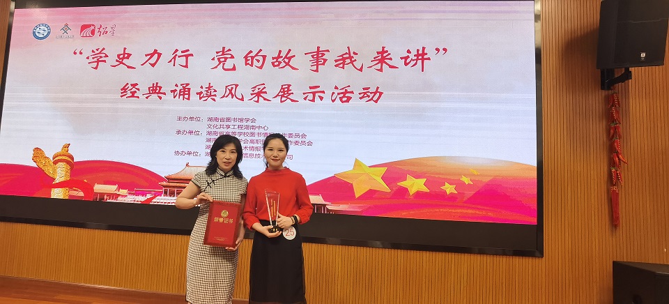 2021年9月17日,为牢牢把握学史明理、学史增信、学史崇德、学史力行的目标要求,结合全省图书馆实际,积极营造“学党史、悟思想、办实事、开新局”的浓厚氛围,湖南省图书馆学会主办的“学史力行,党的故事我来讲”经典诵读风采展示活动在湖南图书馆举办。我馆副馆长魏红梅带队,张雪梅、周思妤作为参赛选手,共同组成威廉体育williamhill图书馆代表队参加本次比赛。