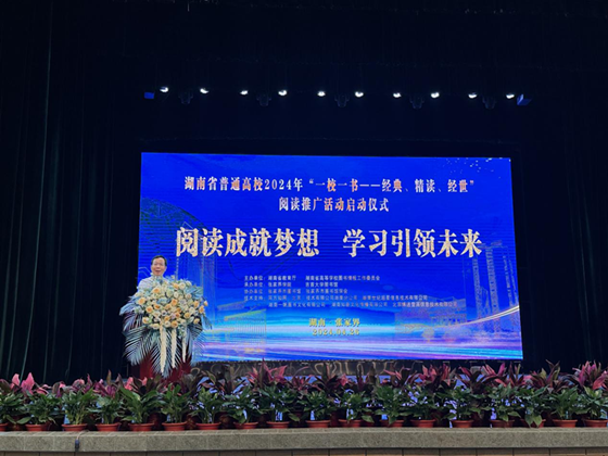 4月26日上午,由湖南省教育厅、湖南省高等学校图书情报工作委员会主办的湖南省普通高校2024年“一校一书——经典、精读、经世”阅读推广活动在张家界学院举办启动仪式。威廉体育图书馆易奇为、周思妤、张裴皓老师参加启动仪式。
