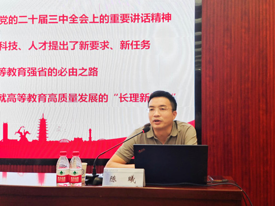 报告会上,陈曦从深刻认识和把握全会的重大意义、深入学习领会习近平总书记在全会上的重要讲话精神、全会对教育、科技、人才提出了新要求新任务、进一步全面深化改革是建设高等教育强省的必由之路、进一步全面深化改革、奋力书就高等教育高质量发展的“长理新篇章”等方面,对党的二十届三中全会精神作了系统阐释和深入解读。
