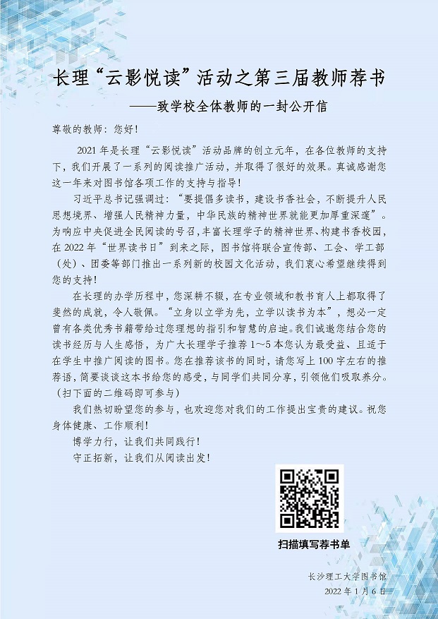 上一条:图书馆关于寒假期间读者服务工作安排的通知 下一条:图书馆关于2021年度评先评优结果的公示