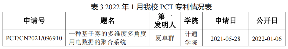2022年1月,威廉体育作为第一申请人,申请PCT专利共计1件,如表3所示。