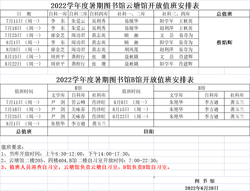 为方便读者学习,暑假期间图书馆有关库室开放安排如下: