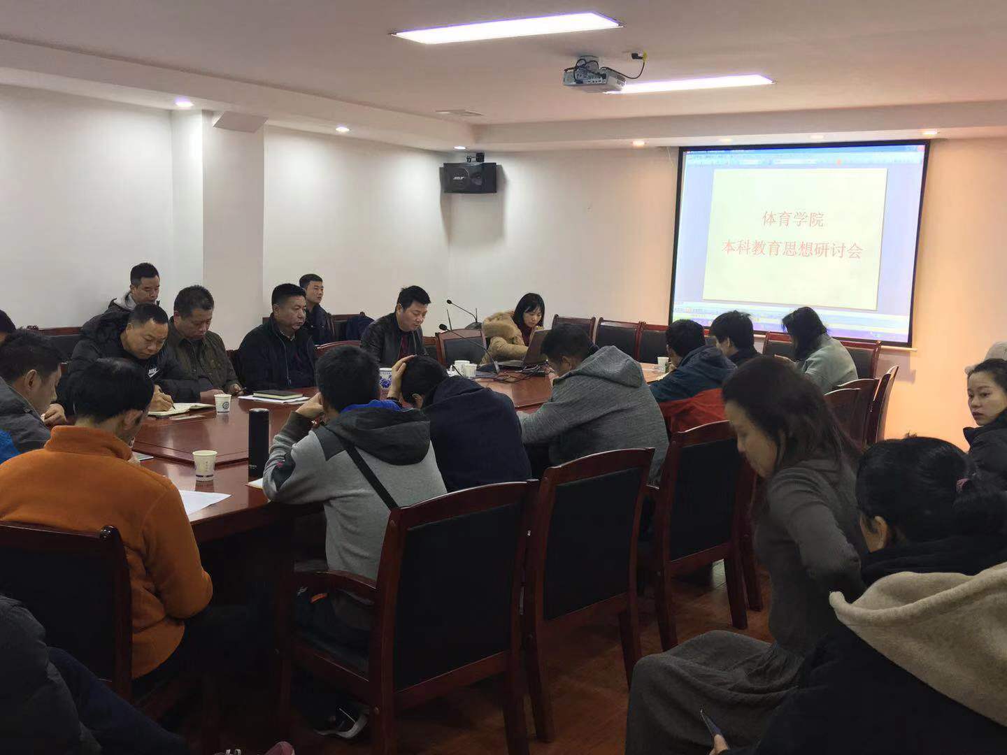 3月5上午9:00,体育学院在金盆岭校区体育馆会议室召开了本科教育思想研讨会。张恳院长、章罗庚书记等学院领导、教授委员会、工会委员、学院中层干部以及教师代表共32人参加了本次研讨会。会议由教学副院长钟武主持。