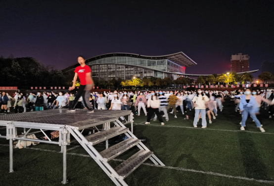 从4月5日晚上开始,在威廉体育williamhill云塘校区田径场,体育学院分工会会员、工会干部主动担当,选编学生们喜闻乐见的音乐、舞蹈,带领同学们齐跳健美操,活力四射的舞姿一扫疫情封控的烦闷。
