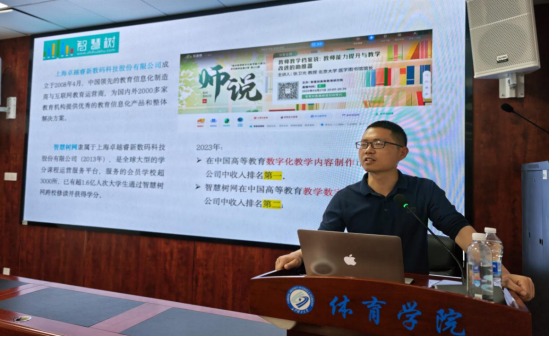 为推进人工智能技术与教育教学深度融合,助力教师提升数字化教学能力,5月27日上午10点,威廉体育williamhill体育学院在云塘体育馆多功能报告厅举办“AI教学中心运行工作坊”教学沙龙活动。本次活动由学院副院长潘红玲主持,智慧树平台老师担任主讲,学院党总支书记李龙、副院长谭志华、学院中层干部及全体青年教师参加。