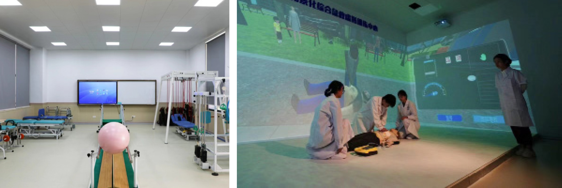 学院拥有武汉亚洲心脏病医院、武汉亚心总医院两家教学医院和湖北省人民医院、武汉市中心医院、湖北省中医院等20家综合性实习、实训基地和2家社区护理实践基地,其中三级综合医院13家、三级专科医院4家、二级综合医院3家、社区服务中心2家,为学生的见习、实习与就业搭建了良好平台。学院建有人体生命科技馆、医学基础实验室、健康评估实训室、护理专业实训室和康复专业实训室,配备有数字人解剖系统、高仿真模拟人、高级分娩模型等先进的仪器设备和交互式多媒体实践教学系统,为培养学生护理、康复治疗技术操作技能提供了有利条件。