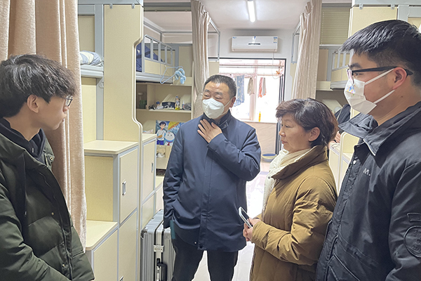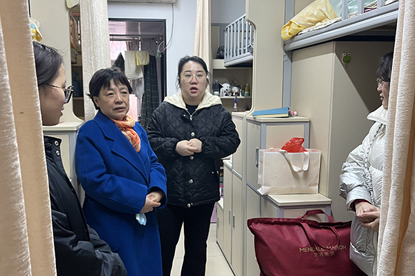 学校党委书记冉春桃在商学院领导、辅导员和班主任的陪同下,先后走进蒹葭斋、春华斋学生公寓亲切看望返校学子。“寒假过得怎么样?”“开学以后有什么学习安排?”每到一处寝室,冉书记都会细心询问学生们的学习生活情况,了解他们返校后的思想动态。她叮嘱大家要调整好作息时间,安排好学习生活,注意加强个人卫生与健康防护,并勉励大家珍惜大学时光,认真钻研专业知识,掌握专业技能,扩展兴趣爱好,不断磨砺和提升自我。同学们深受鼓舞,畅所欲言,现场气氛温馨融洽。