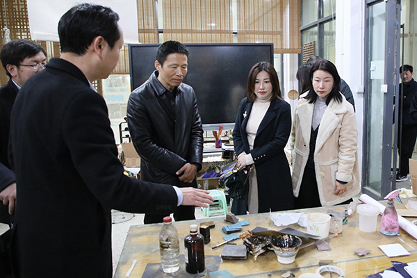 徐拥华向来访领导汇报了学校在“大文创、大健康”专业集群建设、科研项目、产业转化、创新资源、实习实训等方面,推动区校融合发展所做的努力,并就深化拓展区校合作发展,加快推动区域文化产业发展、创新创业孵化服务提出了意见建议。